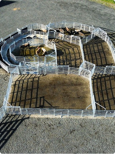 Curved races are superior to straight ones because cattle instinctively tend to return in the direction they came from. Our designs encourage cattle to turn and move, resulting in an improved overall flow.