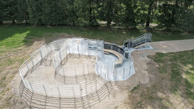 You’ve got three working pens, varying in capacity (holding pen capacities outlined in the image carousel above). You’ve got a cattle-free zone for safety, and our popular circular forcing pen.